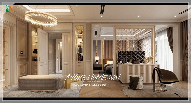 Thiết kế tủ áo hiện đại cho phòng ngủ master tại biệt thự cao cấp