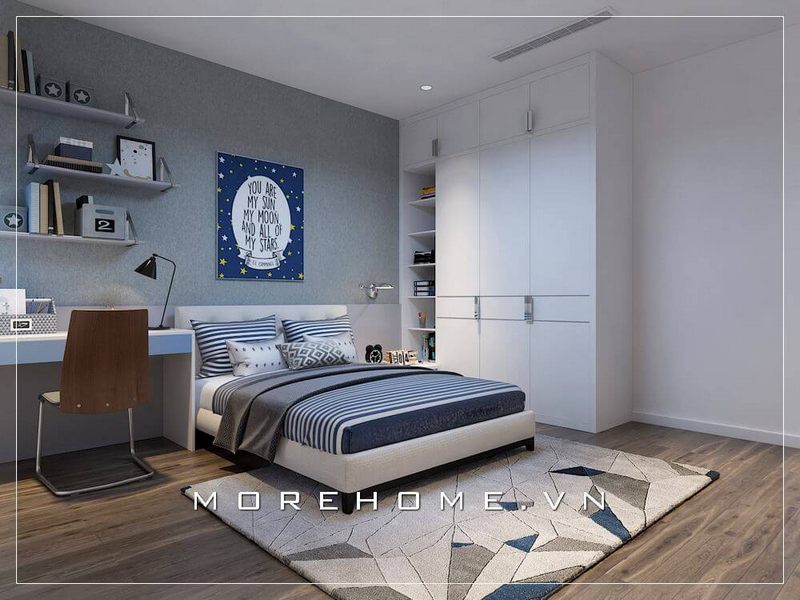 Tủ quần áo gỗ công nghiệp giá rẻ với gam màu trắng nhẹ nhàng được gia chủ lựa chọn cho phòng ngủ của 2 bé trai