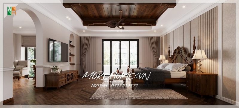 Tạo ra một phòng ngủ master với nội thất gỗ tự nhiên theo phong cách tân cổ điển sang trọng để trang trí các căn hộ, nhà phố và biệt thự.
